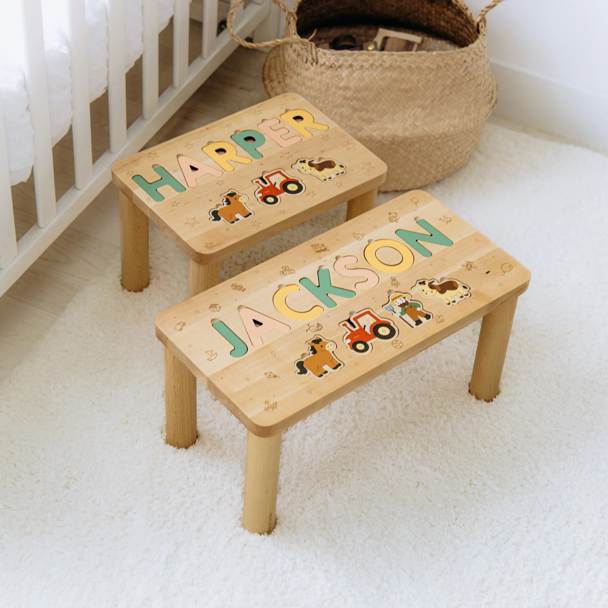 Personalized Farm Toddler Step Stool with Name Puzzle – Montessori-Inspired